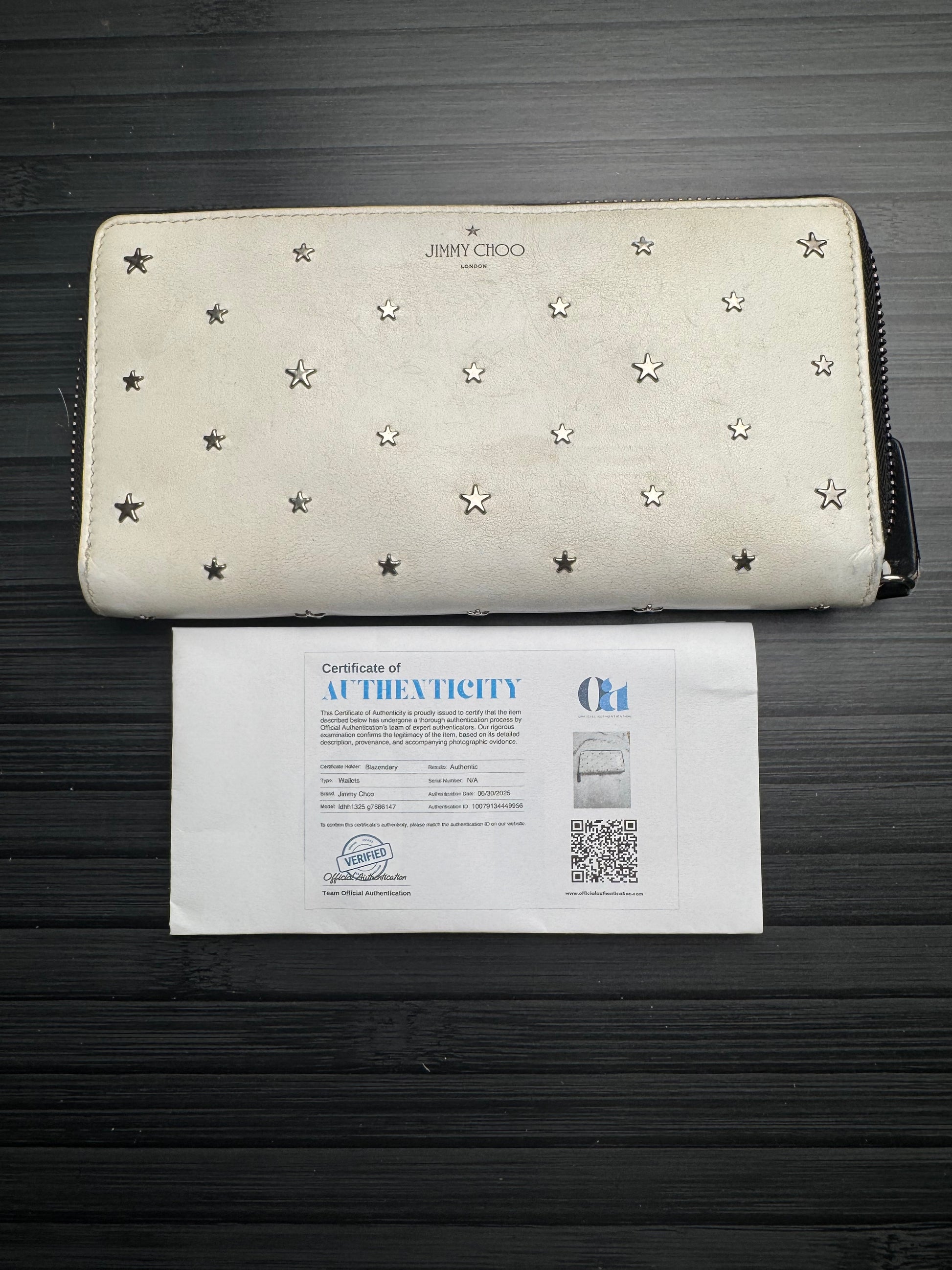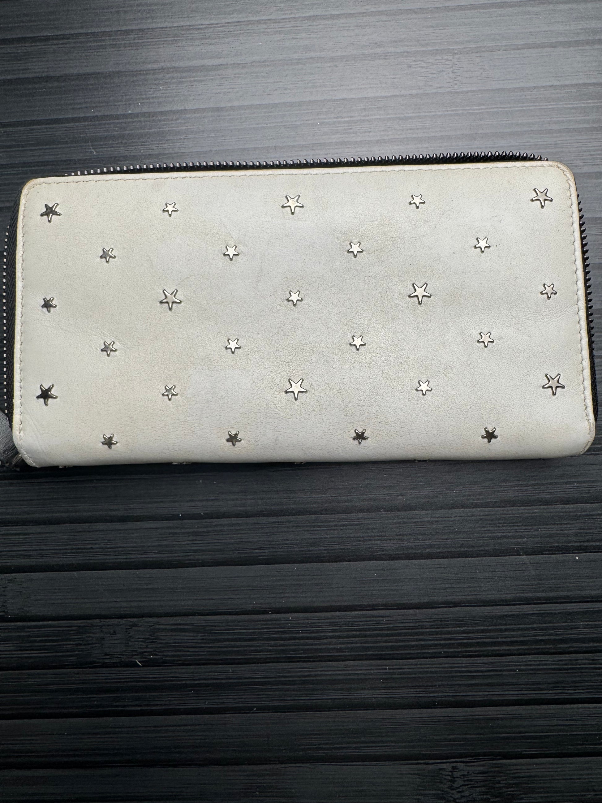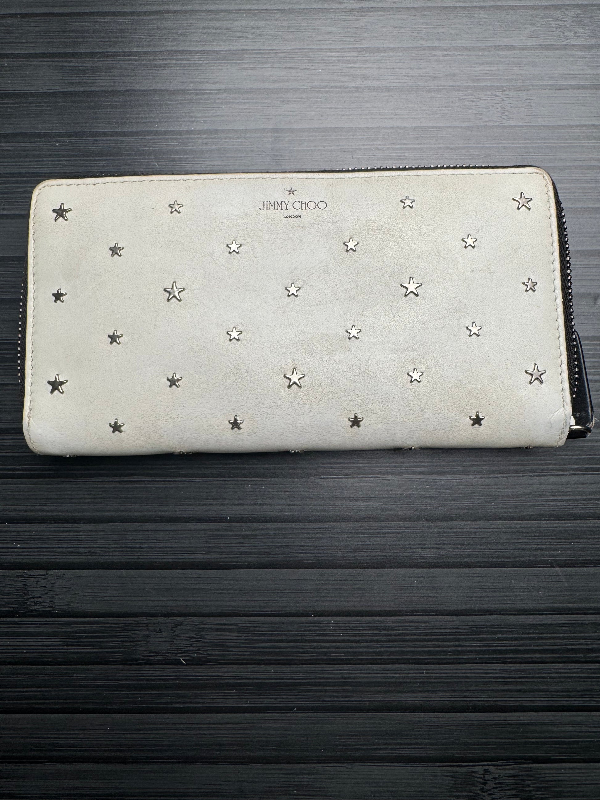 Jimmy Choo White Leather Star Studded Continental Wallet
