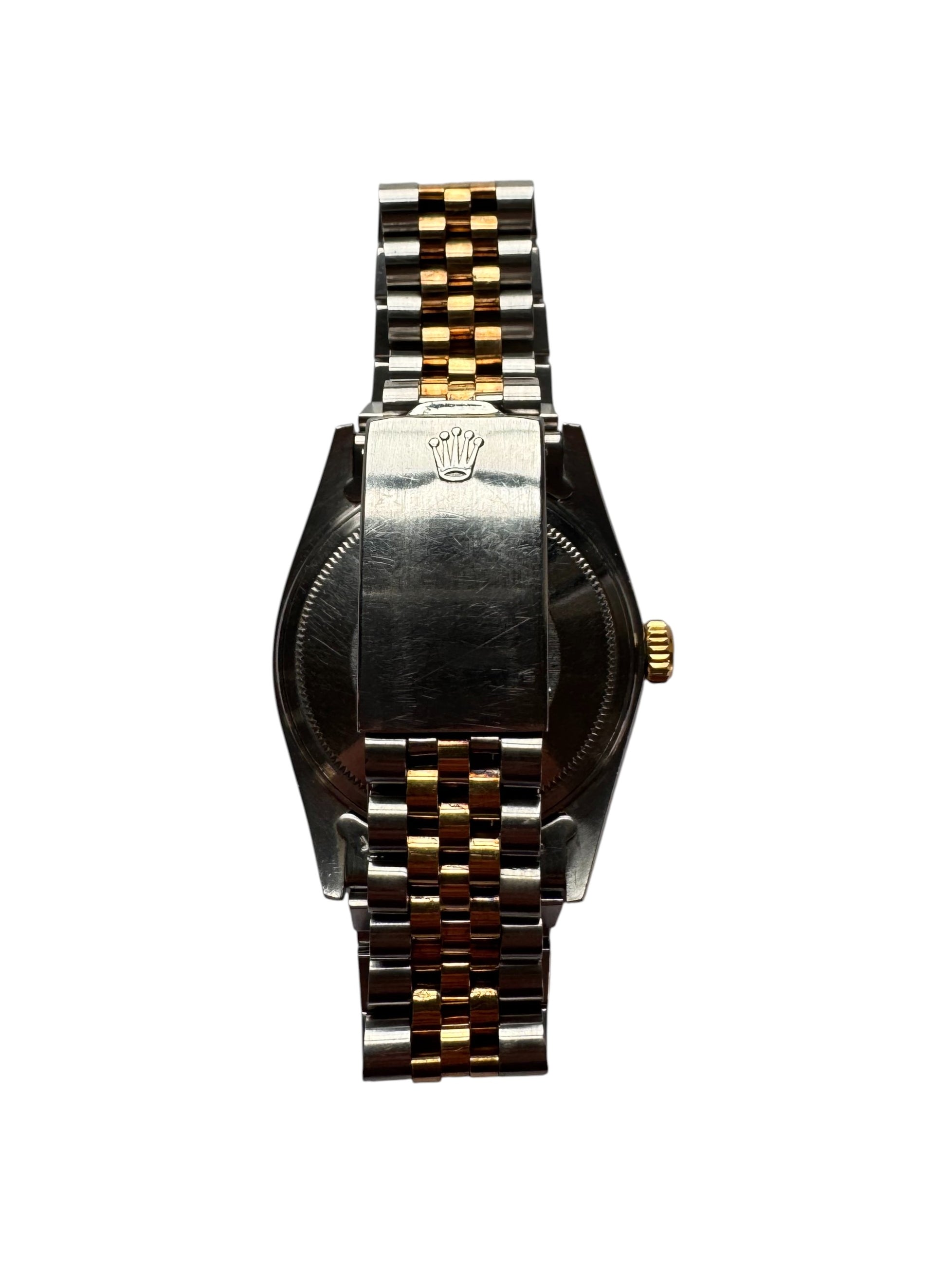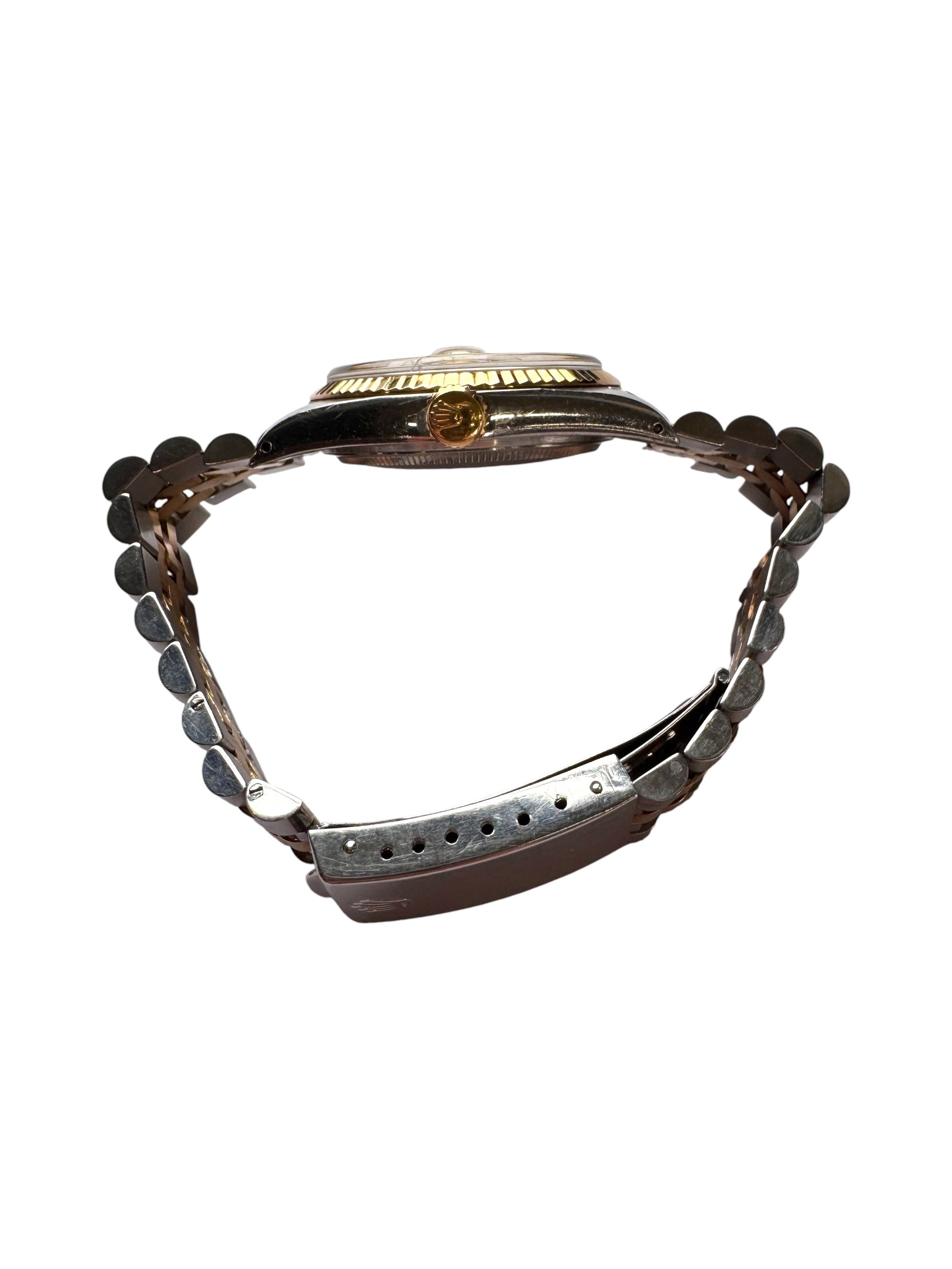 36mm Rolex Two-Tone Yellow Gold & Stainless Steel Oyster Perpetual Datejust. Silver Dial with Stick Hour Markers. Yellow Gold Smooth Bezel. Two-Tone Jubilee Band. Style 69163. Circa 1996.