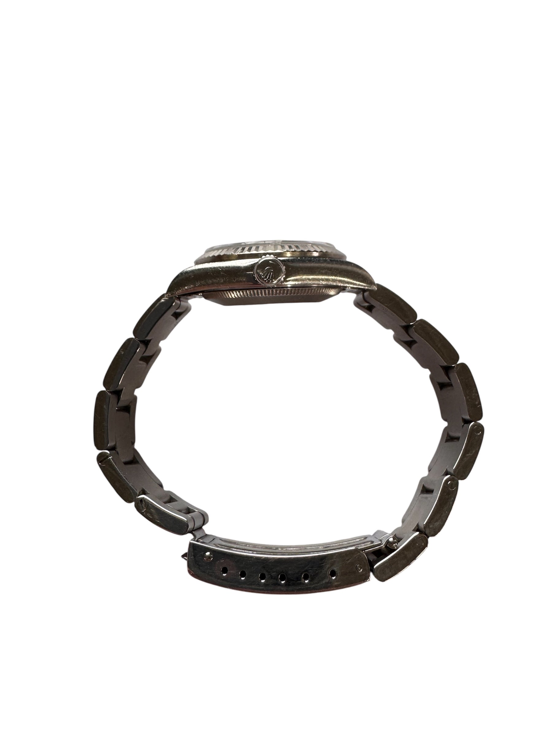 31mm Rolex Stainless Steel Oyster Perpetual Datejust. Silver Jubilee Monogram Dial with Stick Hour Markers. Fluted Bezel. Stainless Steel Oyster Band. Circa 1995.