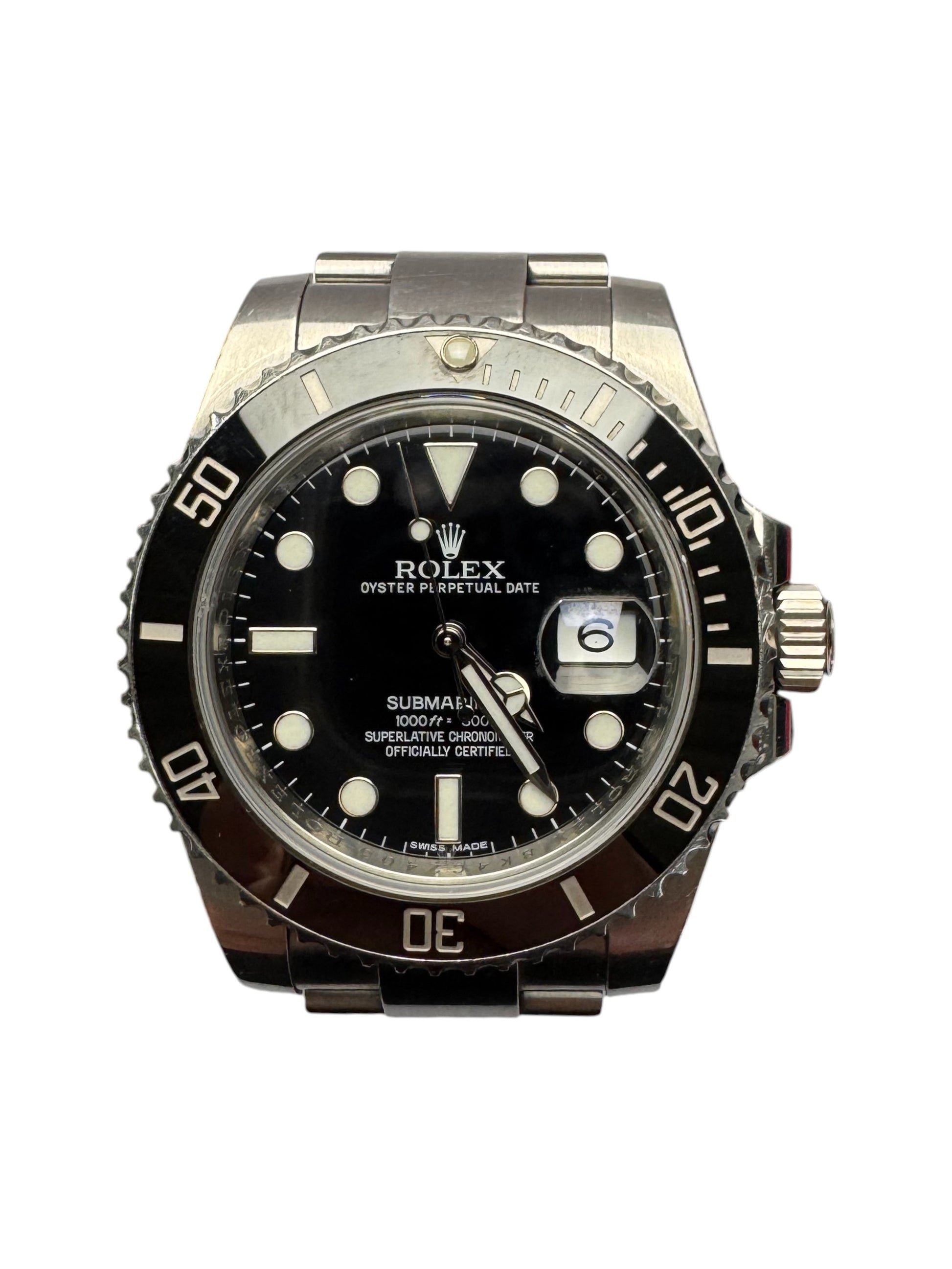 40mm Rolex Stainless Steel Oyster Perpetual Submariner Date Watch. Black Dial. Ceramic Bezel Black Insert. Stainless Steel Oyster Band. Style 116610.